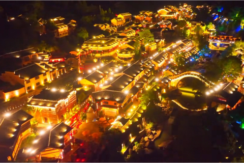★江西省第一夜景——葛仙村水幕电影,梦幻仙村灯光秀