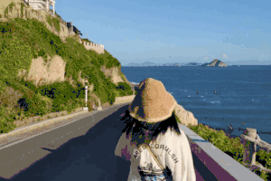 迎着海风漫行至海边,↑百步沙前海域辽阔,天海相接,只见惊涛拍岸,浪花有节奏地在我们脚下溜过。