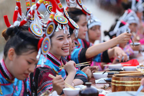 畲族长桌宴是畲族特有的饮食文化,畲族人民以大山为伴,靠山吃山,经过长期的发展,形成了自己独特的饮食文化,各式各样的农家食材被畲娘们做成美味的畲家菜肴。