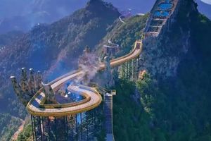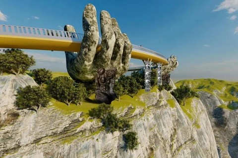 海拔1500米,巨大佛手托起金桥