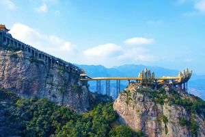 在海拔1500米的崇山峻林中,一双高达22米的佛手,托起一座“空中金桥”,漫步其上,可览一峰九崖、官财岩等奇峰美景,领略“一览众山小”的震撼!