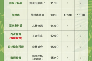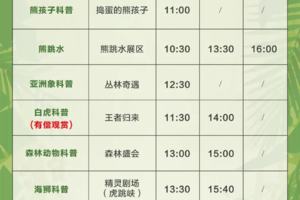 动物表演TIPS:动物表演必看提前安排好时间(车行区没有动物表演,八大免费动物表演的场馆只在步行区)
